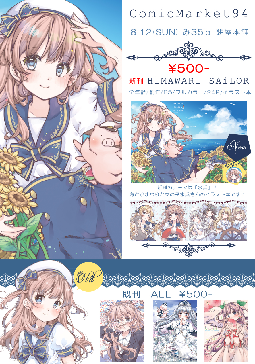 海とひまわりと女の子水兵さんを描いたイラスト本となっております。